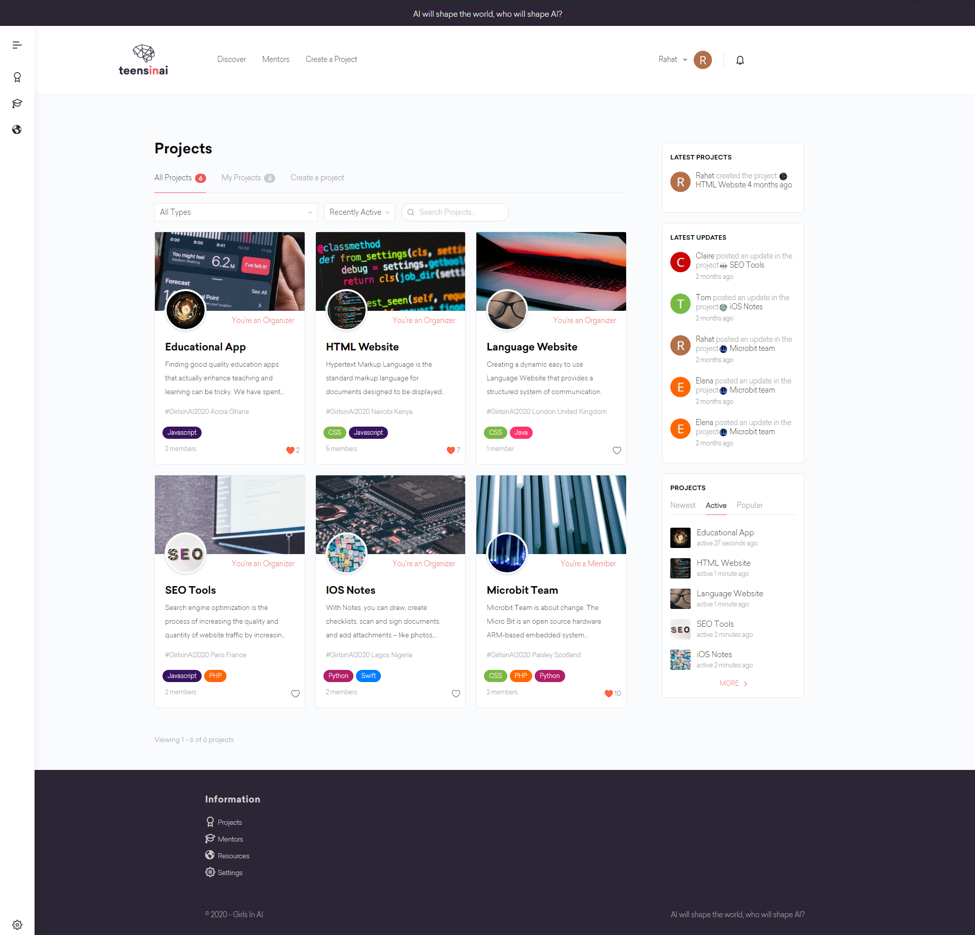 Mentors are able to browse the directory of projects and join ones they feel they could make an impact in whilst communities of students could also start to collaborate on these projects and begin to make a difference.